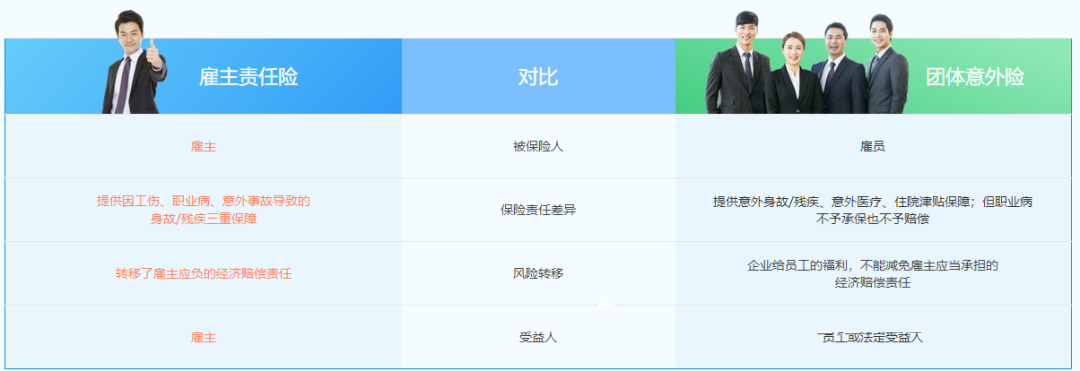 不少企業(yè)對雇主責任險的認識不夠,只通過團體意外險的方式來轉嫁企業(yè)風險。企業(yè)員工因公導致傷害的民事賠償金額高昂,雇主責任重大,一旦面臨風險,雇主將損失慘重。那么雇主責任險與團體意外險的區(qū)別都有哪些呢?